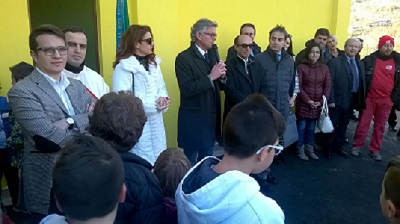 3 dicembre 2016 – Giorno di vera festa a Cerro Al Volturno: è stato inaugurato nella mattinata il nuovo edificio scolastico che ospiterà gli alunni delle Scuole dell’Infanzia, Primaria e Secondaria. La cerimonia è avvenuta alla presenza della Dirigente Scolastica Dott.ssa Ilaria Lecci, del Sindaco di Cerro al Volturno Remo Di Ianni,dei Sindaci di Pizzone,di Acquaviva D’Isernia e di Colli a Volturno. Sono intervenuti anche il Presidente del Consiglio Regionale Nicandro Cotugno,l’Assessore Regionale Carlo Veneziale, il Parroco Don Paolo Scarabeo. Momento particolarmente toccante è stato quello della “consegna delle chiavi” da parte del Sindaco al Capo d’Istituto.